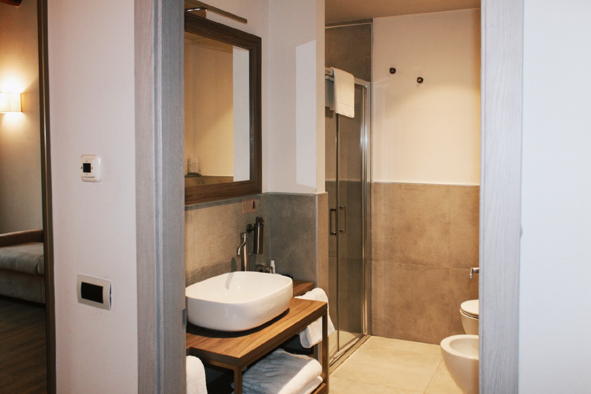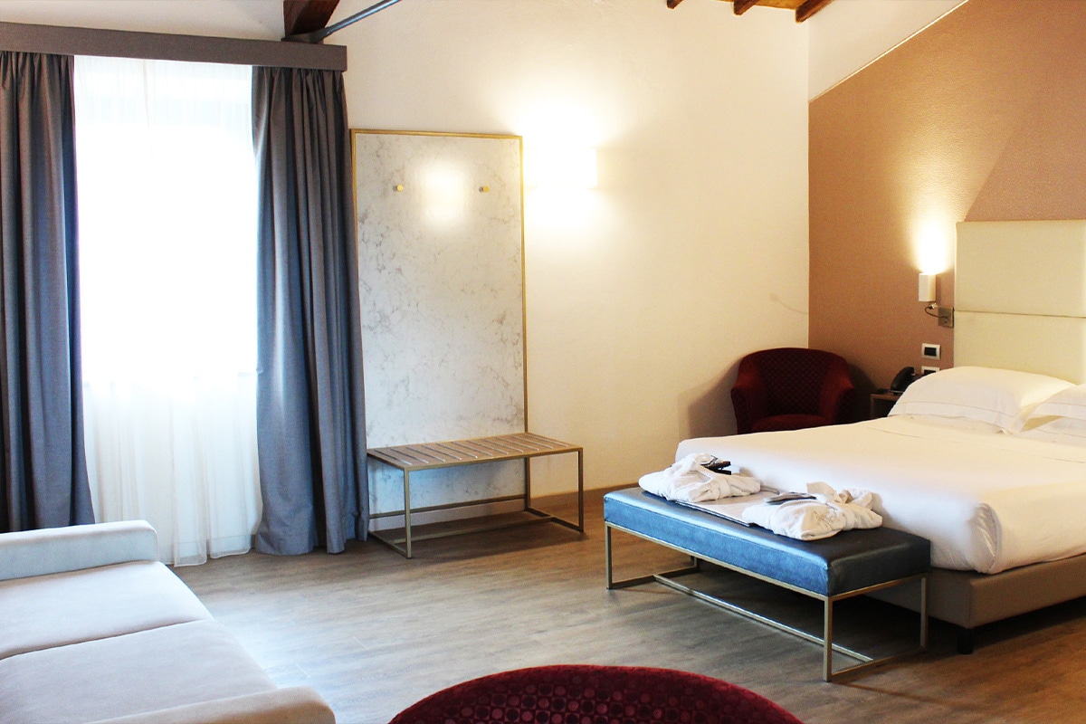 Luminosità ma al contempo discrezione per questa camera unica, munita di bagno con doccia a pioggia, scrivania e ampi spazi, letto matrimoniale e un comodo divano letto, che permette di aumentare la capienza della camera fino a 4 posti letto.